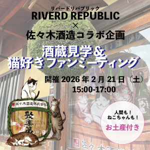 リバードリパブリック×佐々木酒造コラボ企画 酒蔵見学&猫好きファンミーティング開催! 2026年2月21日(土) 15:...